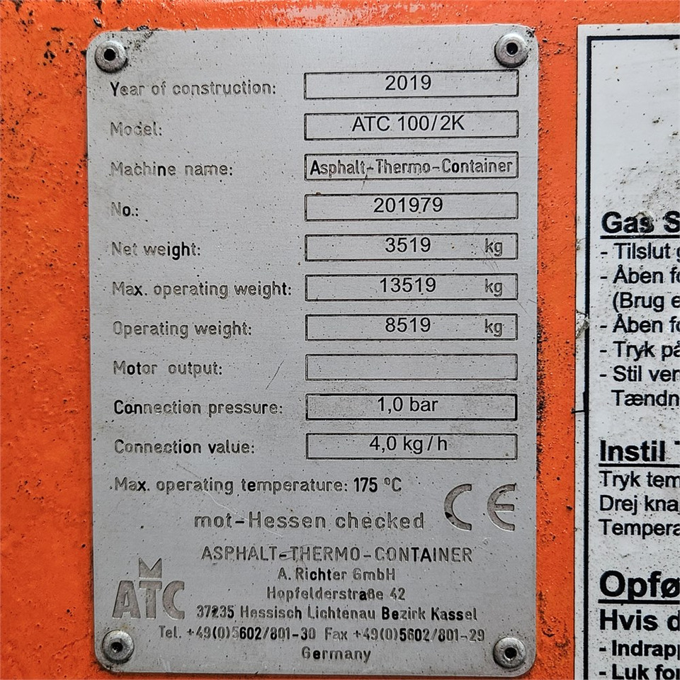 Check the technical data of the unit, picked out from the catalog of Other machinery.
