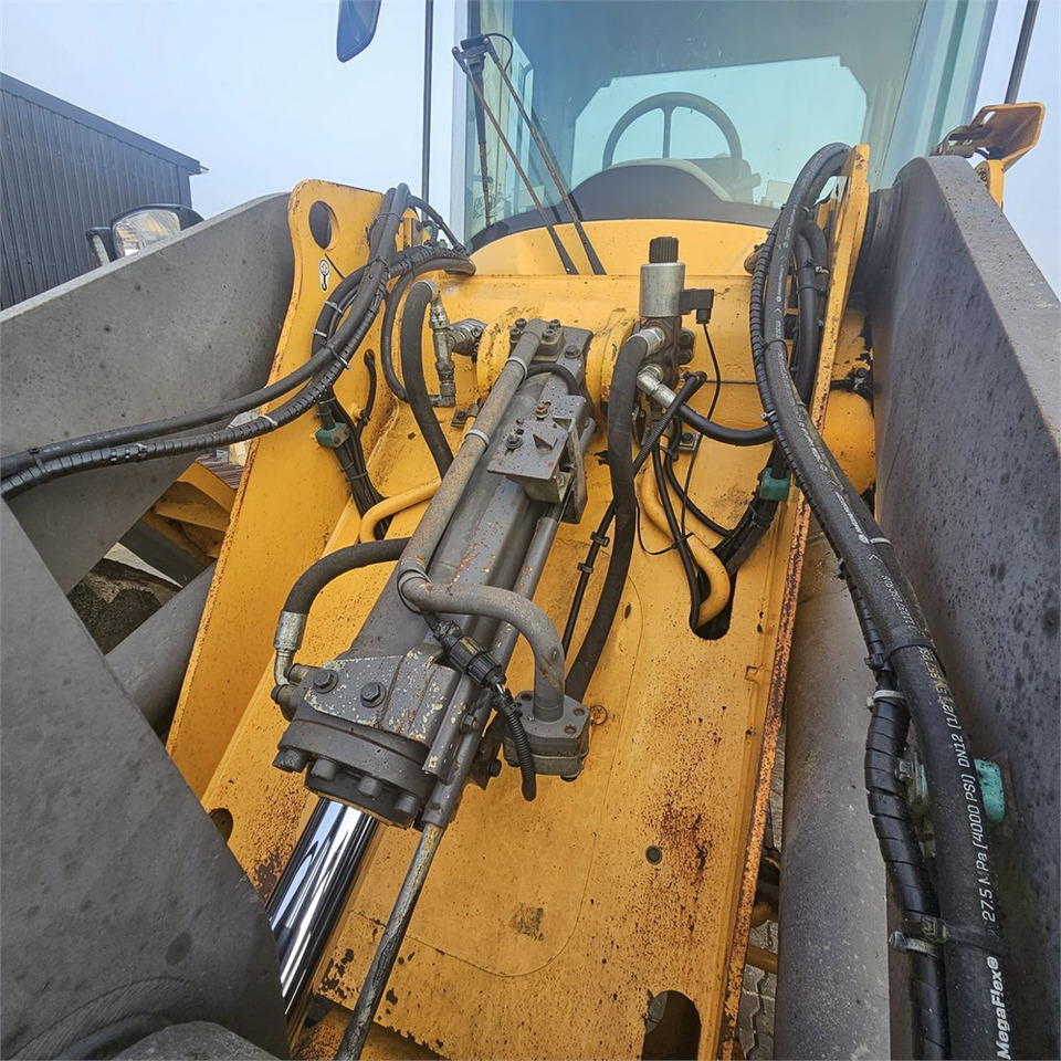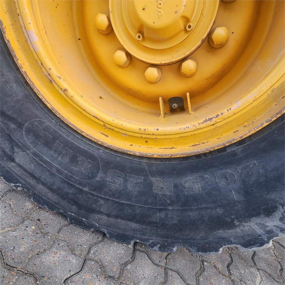 Detaljene på aksler, fjæring og euro norm inkluderer: firehjulsdrift, sentral smøring, hjul: 20.5R25.